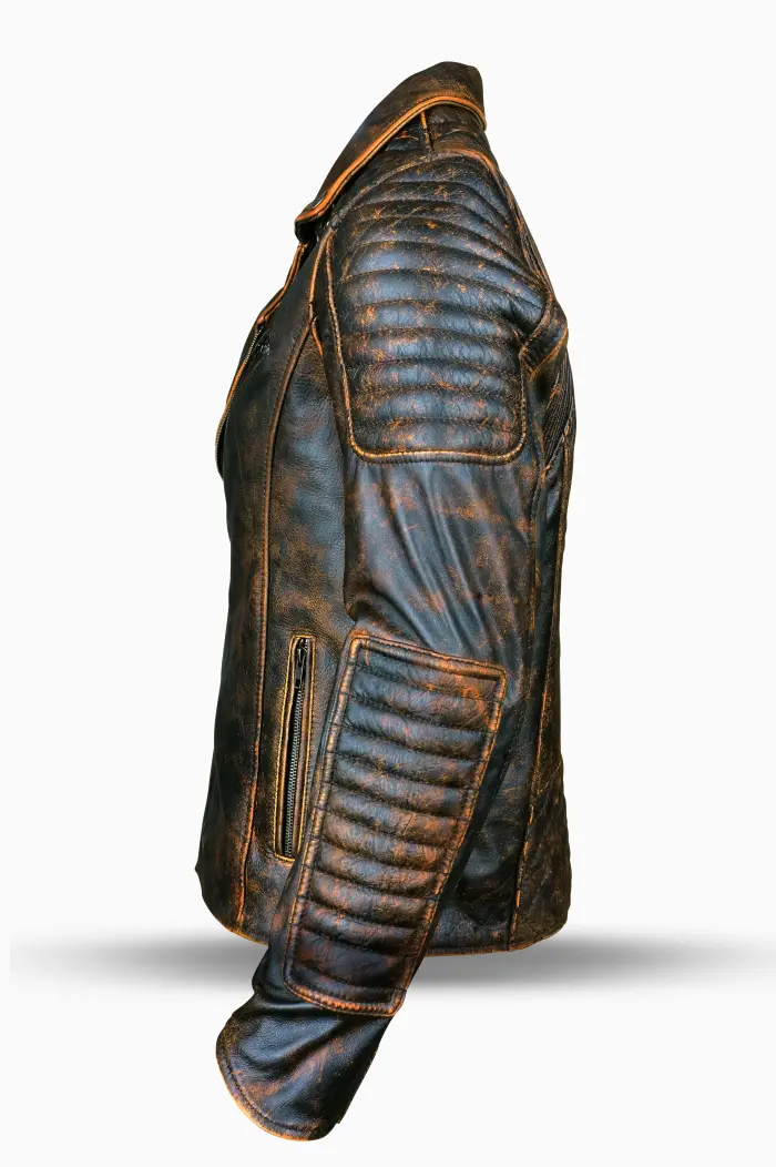 This leather jacket offers ample storage space for your essentials, featuring four exterior and two inside pockets. Whether you need to keep your phone, wallet, or keys within reach, these pockets provide convenient accessibility without compromising on style.