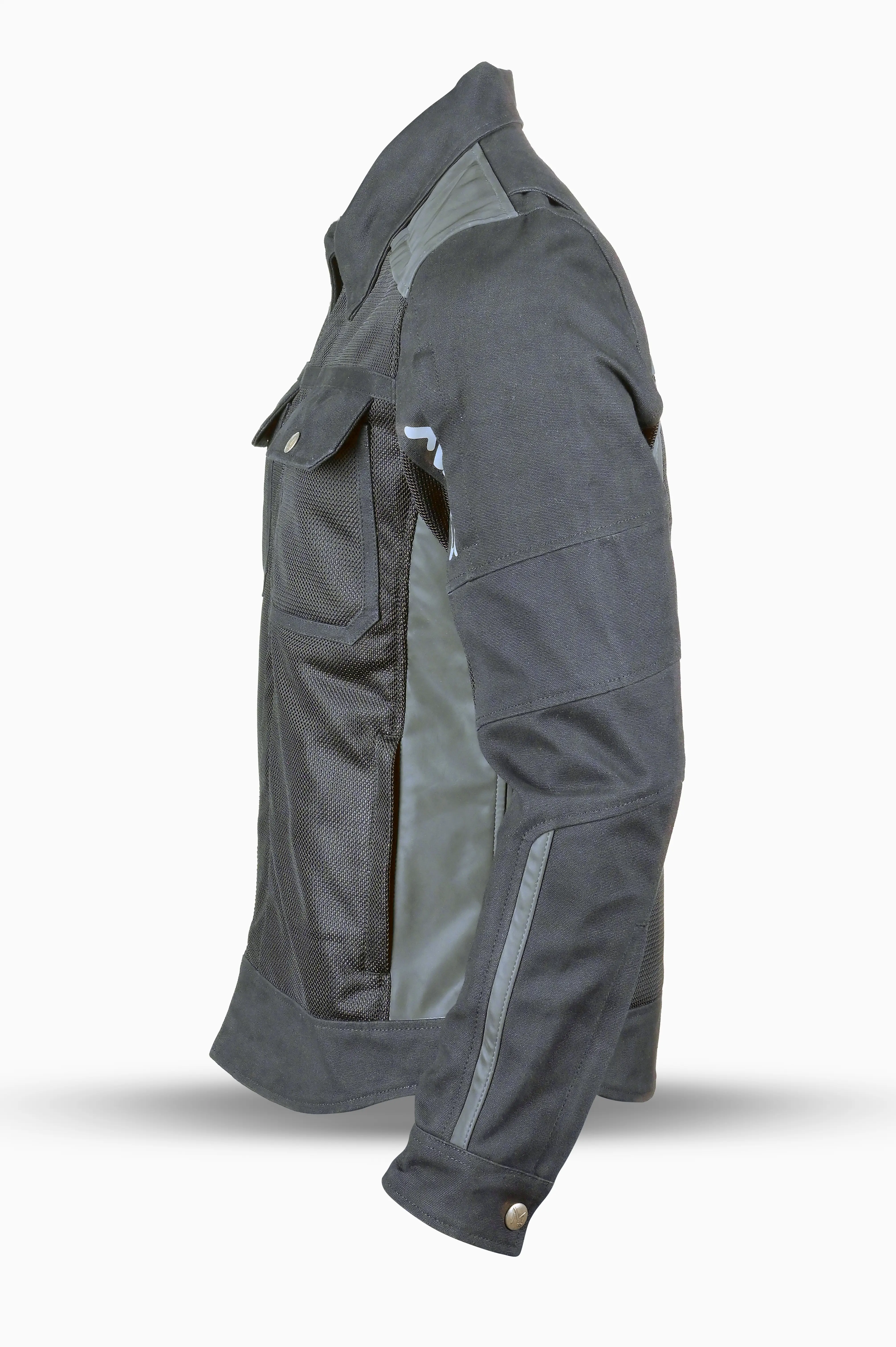 Engineered for riders who demand style, function, and safety, this jacket combines reflective fabric, tough cotton canvas, and breathable mesh for maximum performance. With Kevlar reinforcement, CE-approved protectors, and versatile venting, it’s designed to keep you protected and comfortable on every ride.